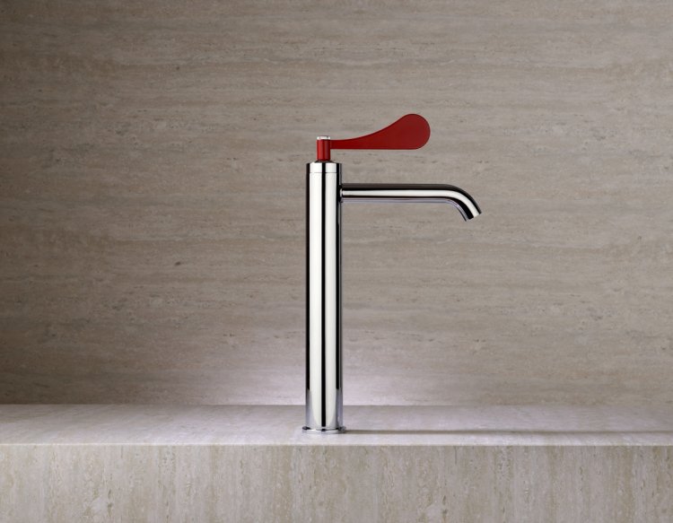 5. Paola Navone hat für Mamoli eine Armatur entworfen, die den Hebel in den Mittelpunkt des Designs stellt. Ein leuchtend rotes Element mit starker visueller Wirkung, inspiriert von der Form eines überdimensionalen Blütenblatts. Typisch Navone: Ironie und Poesie, Erinnerung und Experimentierfreude. mamoli.com