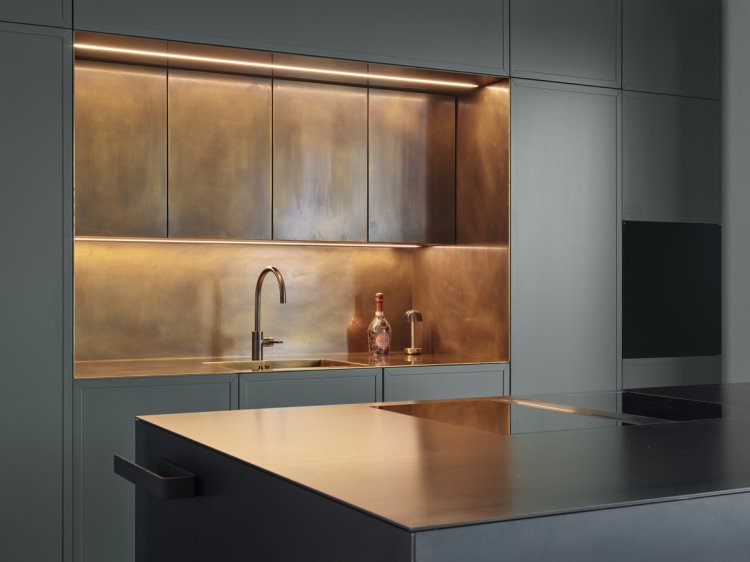 8. Die Küchenprofis von Stuber Team überzeugen mit «Verde Vivo», einem individuellen Küchenumbau mit mattgrünen Fronten, einer durchgehenden Messingrückwand sowie präzise verarbeiteten Massivholzschubladen und modernster Küchentechnik. Nominiert für den «Swiss Kitchen Award 2025». stuberteam.ch