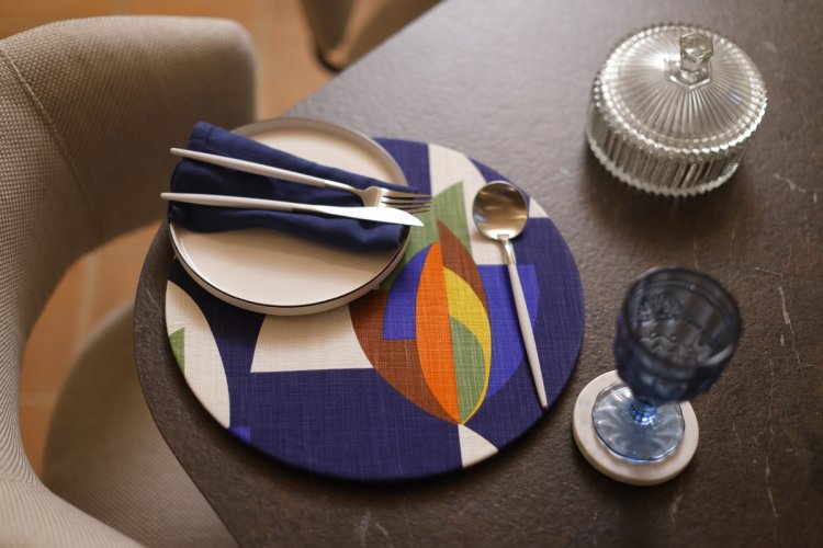 4. Die Tischsets von Designerin Mariana Barros Meier bestehen aus einer runden, dreieckigen oder ovalen Holzbasis und sind mit bunten oder einfarbigen Stoffen bezogen. Der Clou: Die Stoffe können je nach Anlass ausgetauscht werden. interiorsbdesign.ch