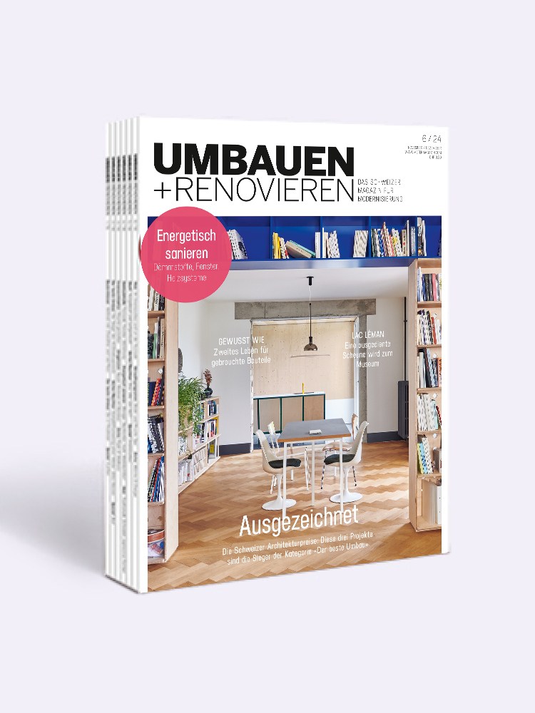 Bestellen Sie jetzt UMBAUEN+RENOVIEREN und Sie erhalten pünktlich und bequem 12 Ausgaben zu Ihnen nach Hause. Sparen Sie 15 % gegenüber dem Einzelverkaufspreis, und wählen Sie eine der exklusiven Prämien (Versand nur in die Schweiz)!